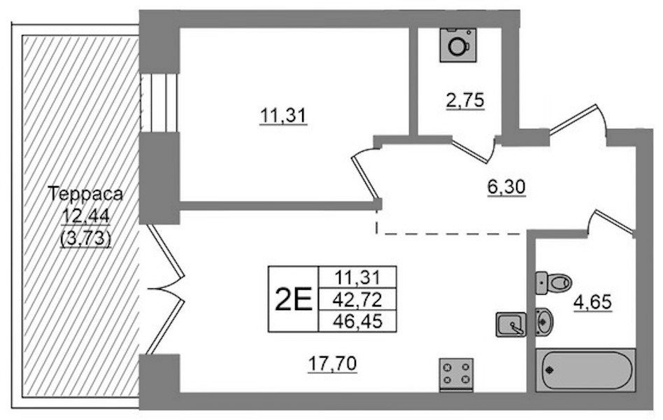 - Площадь46,45 м2
