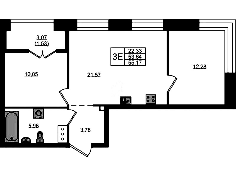 Двухкомнатная квартира на 5-ом этаже 57,17 кв.м