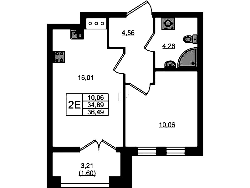 Однокомнатная квартира на 5-ом этаже 36,49 кв.м