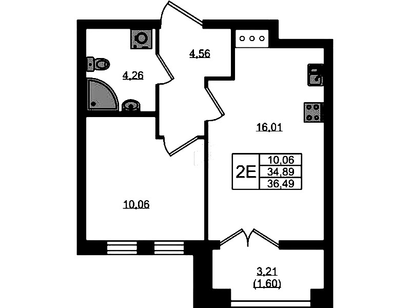 - Площадь36,49 м2
