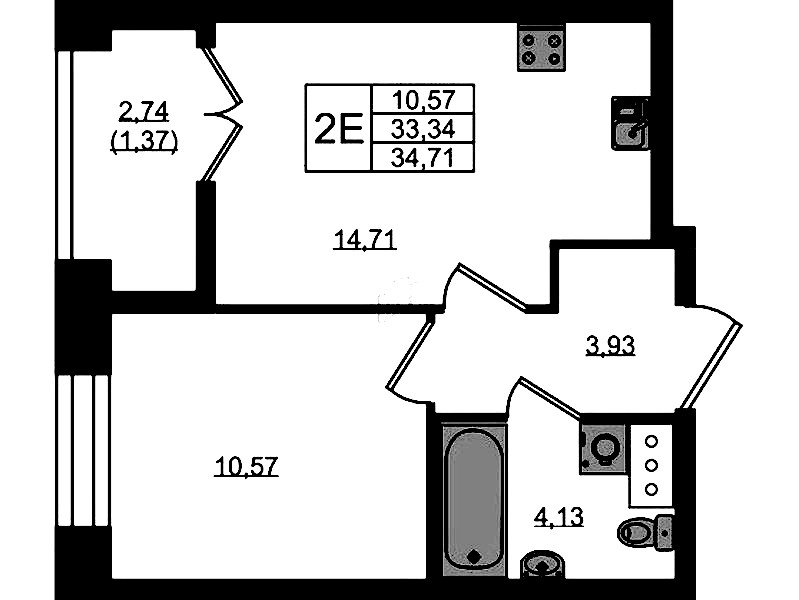 Однокомнатная квартира на 7-ом этаже 34,71 кв.м