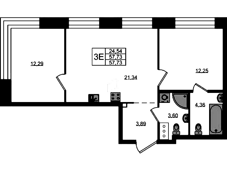 • Площадь57,73 м2