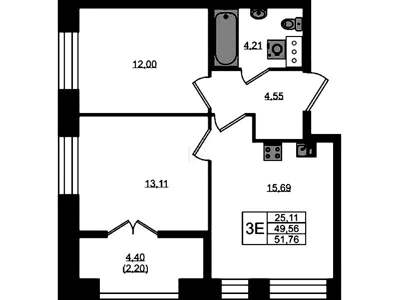 • Площадь51,76 м2