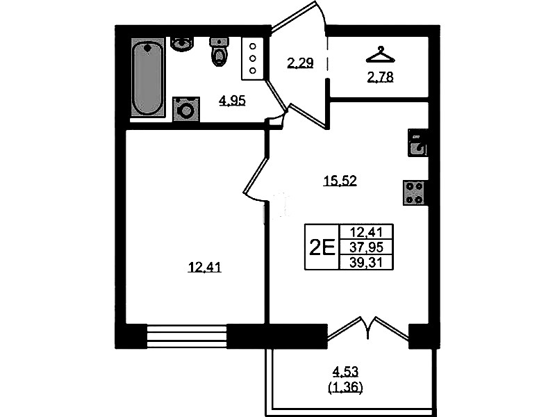 Однокомнатная квартира на 11-ом этаже 39,31 кв.м