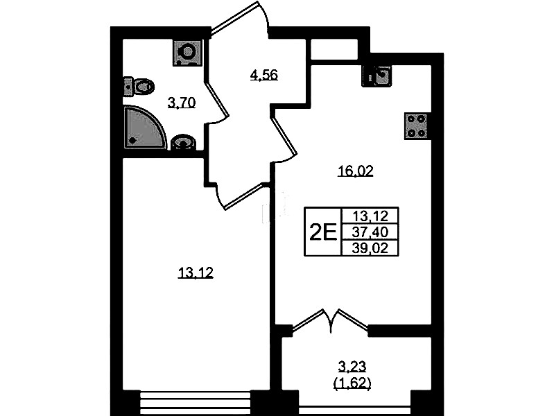 - Площадь кухни16,02 м2