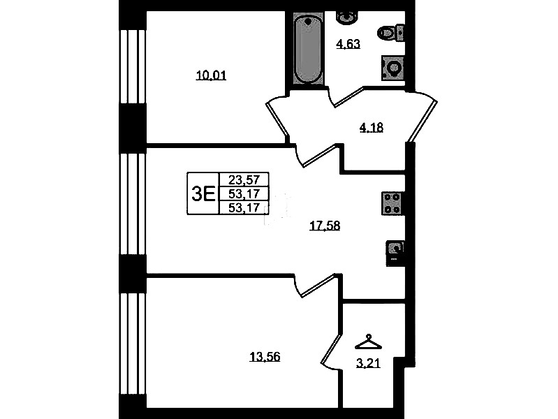 Двухкомнатная квартира на 2-ом этаже 53,17 кв.м