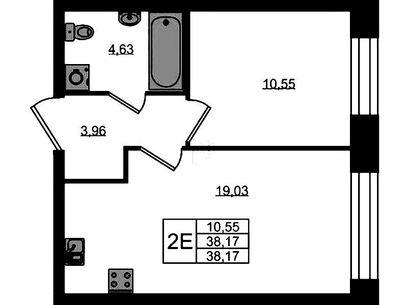 Однокомнатная квартира на 2-ом этаже 38,17 кв.м