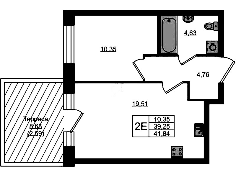 • Площадь41,84 м2