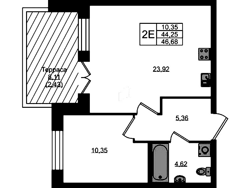 - Площадь46,68 м2