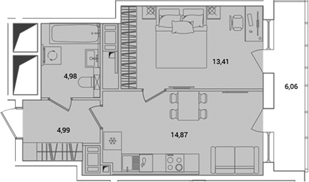 - Площадь41,28 м2