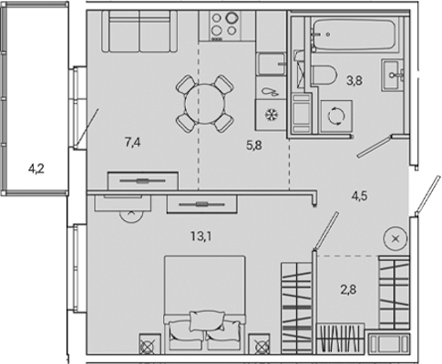 - Площадь41,7 м2