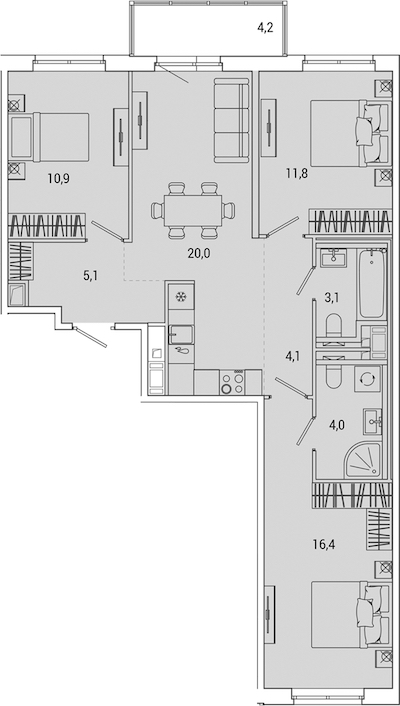 - Количество комнат3