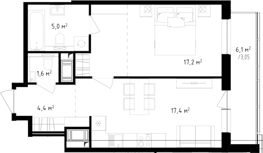 • Площадь кухни17,4 м2