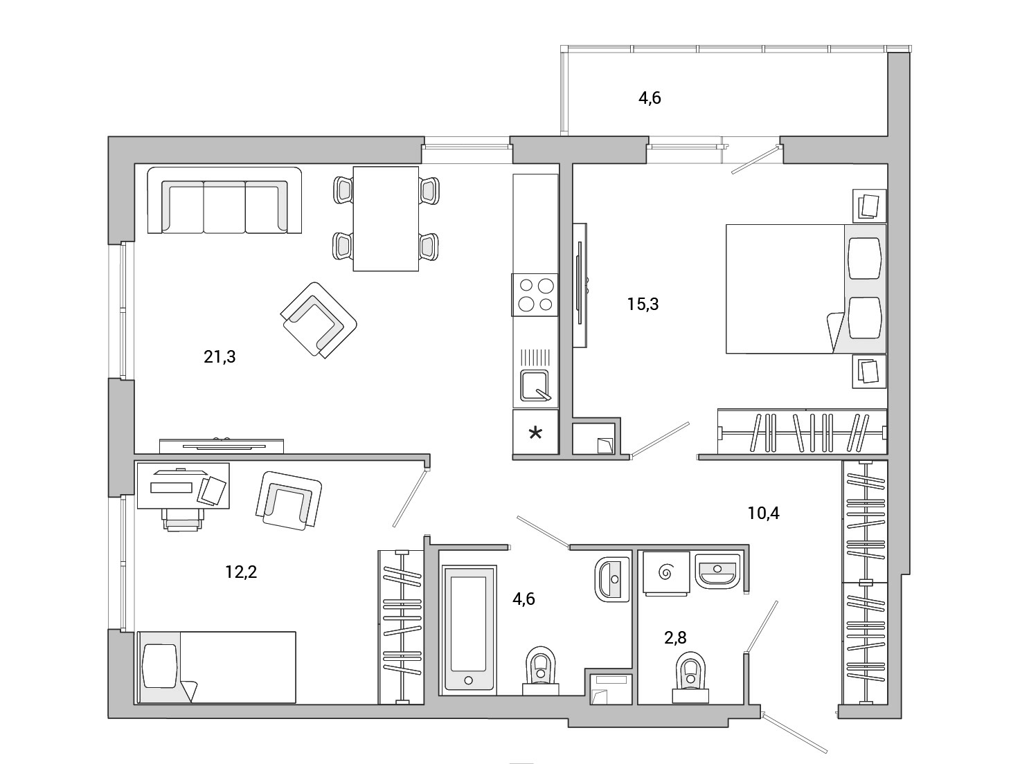- Площадь кухни21,3 м2