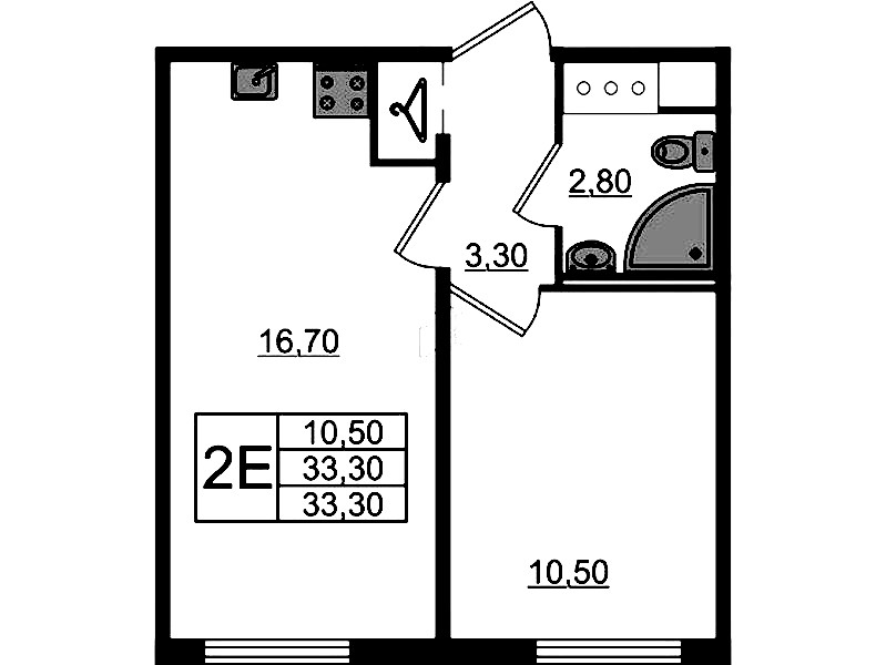 Однокомнатная квартира на 12-ом этаже 33,3 кв.м