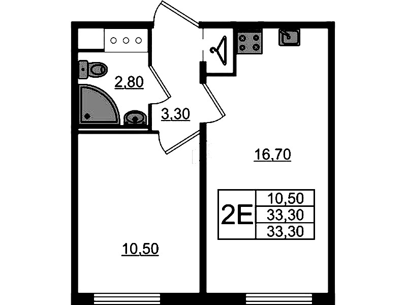 - Площадь33,3 м2