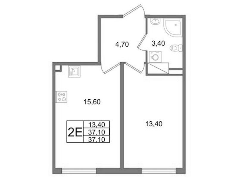 Однокомнатная квартира на 14-ом этаже 37,1 кв.м