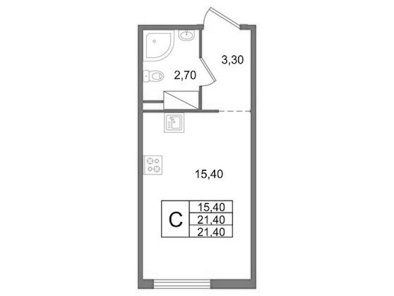 Квартира-студия на 10-ом этаже 21,4 кв.м