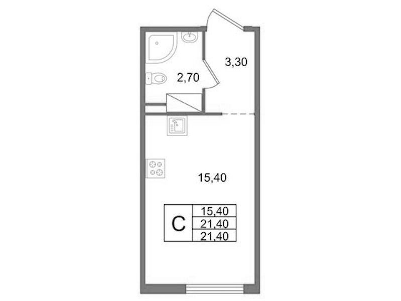 Квартира-студия на 22-ом этаже 21,4 кв.м