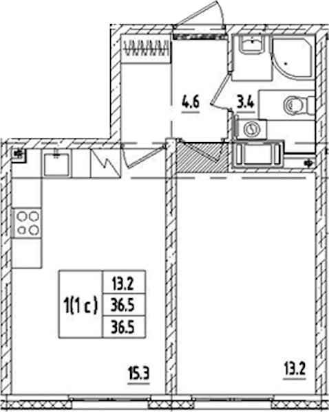 Однокомнатная квартира на 4-ом этаже 36,5 кв.м