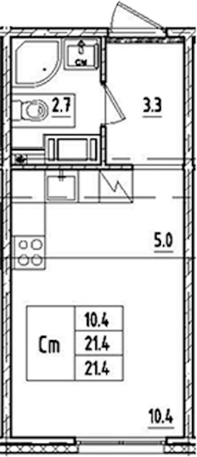 Квартира-студия на 12-ом этаже 21,4 кв.м