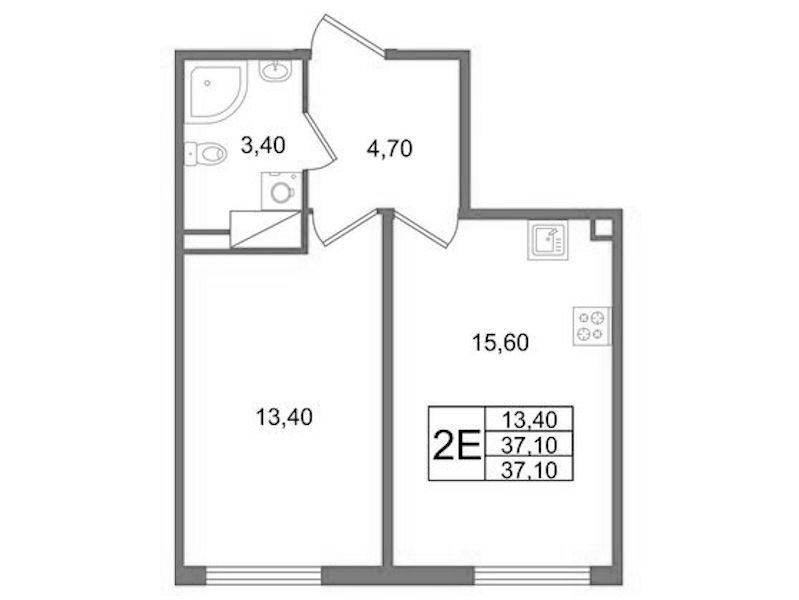 Однокомнатная квартира на 15-ом этаже 37,1 кв.м