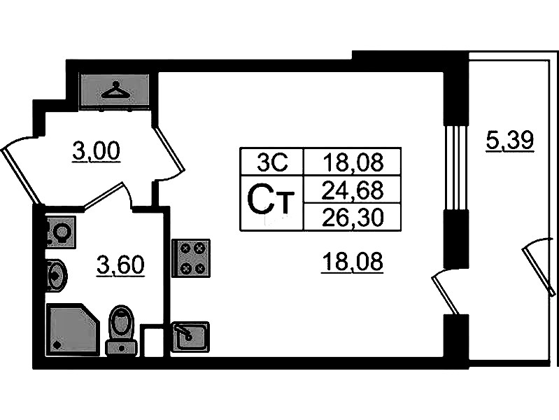 • Площадь24,68 м2