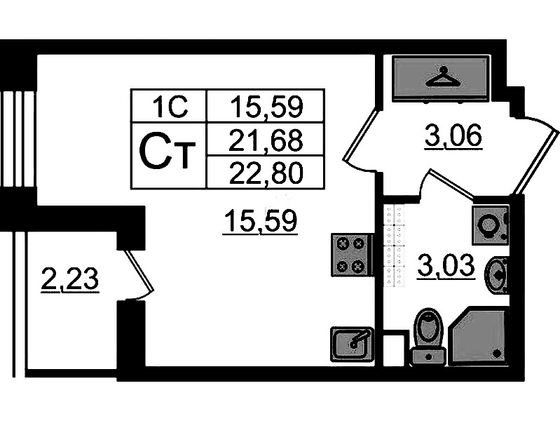 - Площадь21,68 м2