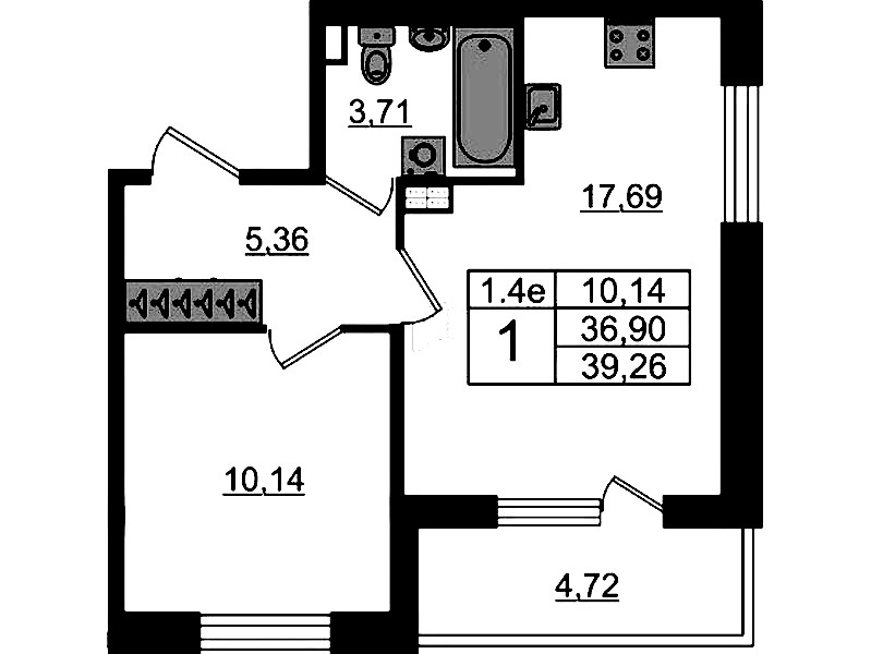 Однокомнатная квартира на 4-ом этаже 36,9 кв.м