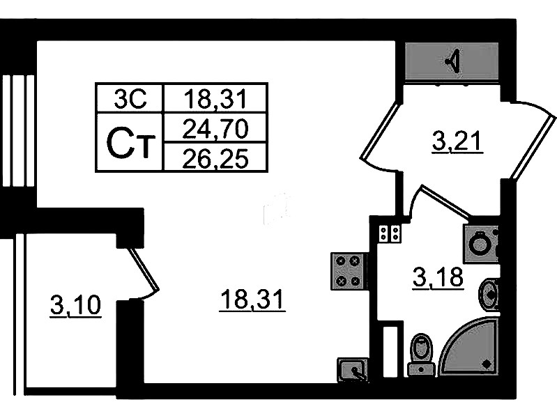 Квартира-студия на 2-ом этаже 24,7 кв.м