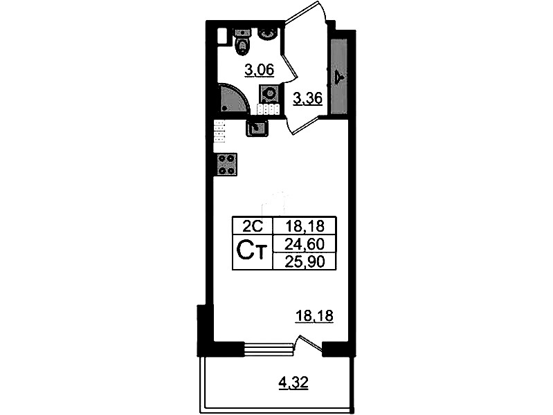 Квартира-студия на 5-ом этаже 24,6 кв.м