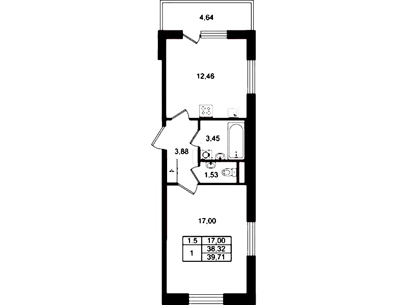 Однокомнатная квартира на 2-ом этаже 38,32 кв.м