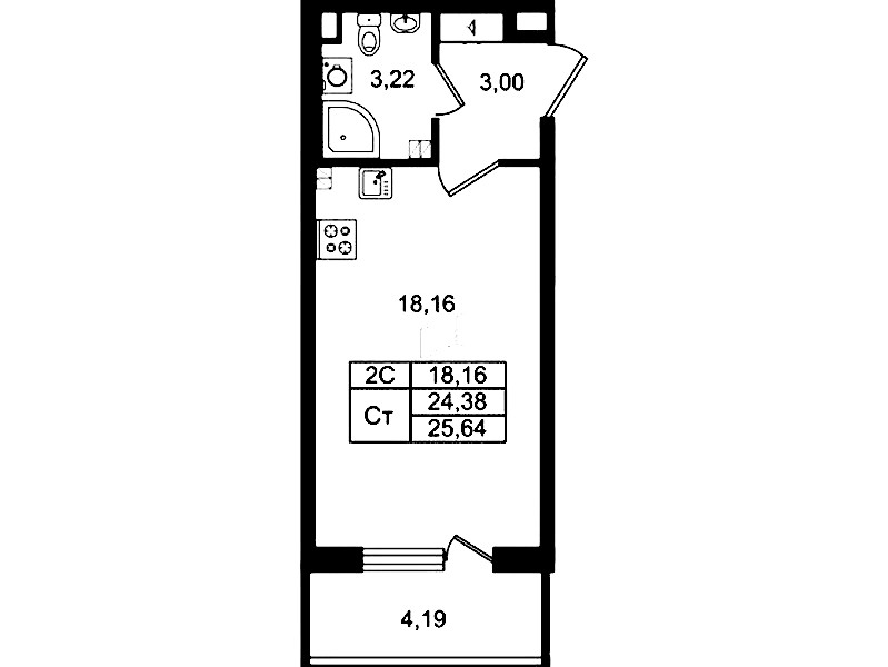 • Площадь24,38 м2