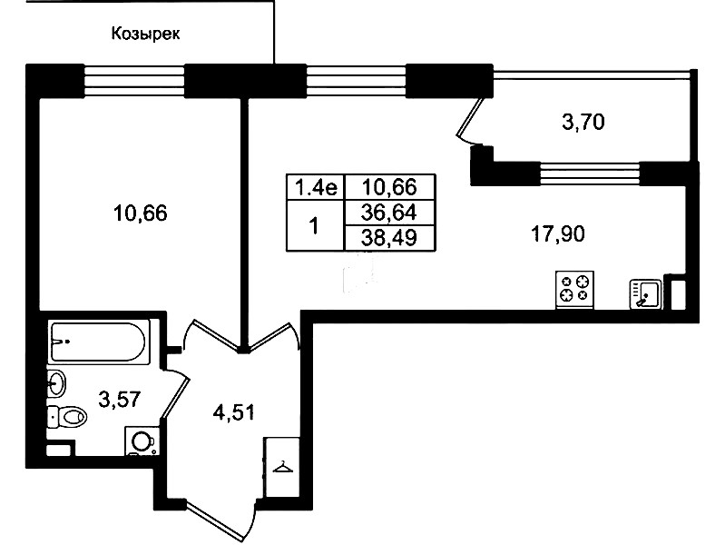 Однокомнатная квартира на 2-ом этаже 36,64 кв.м