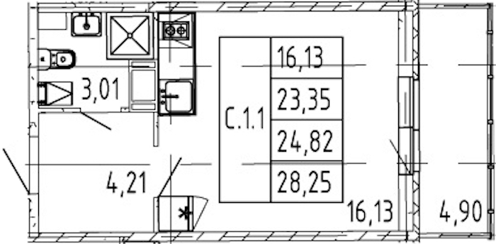 • Площадь23,35 м2