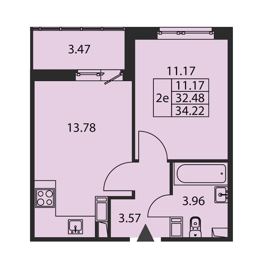 Однокомнатная квартира на 2-ом этаже 32,48 кв.м