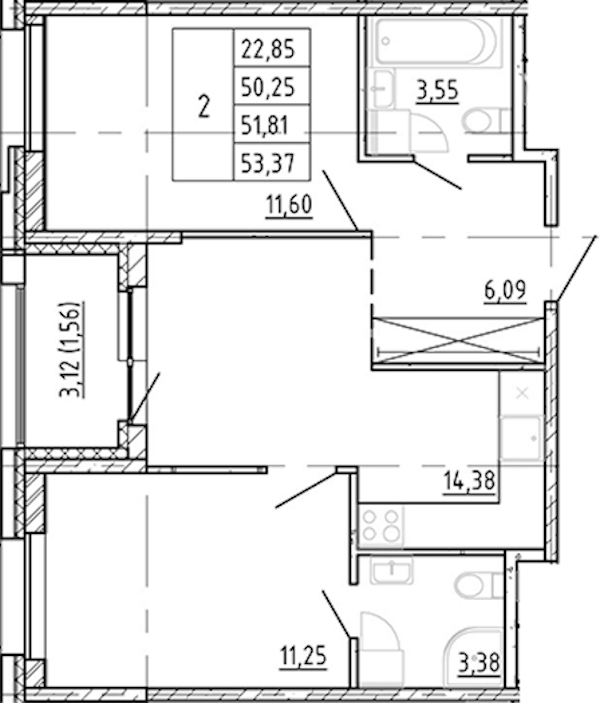 - Площадь50,25 м2
