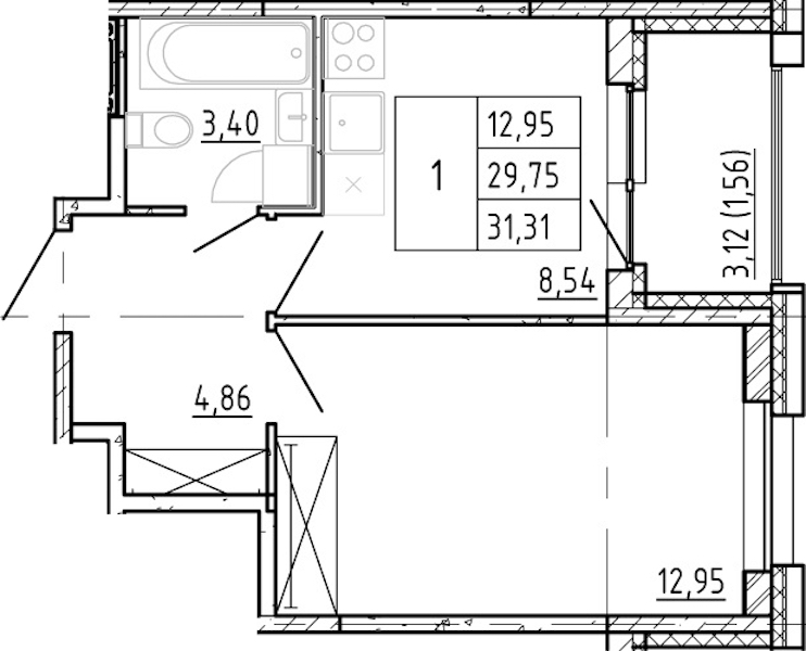 - Площадь кухни8,54 м2
