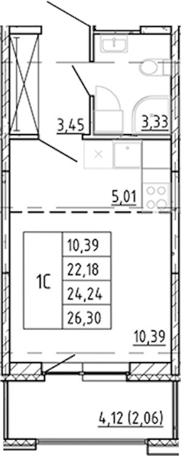Квартира-студия на 8-ом этаже 22,18 кв.м