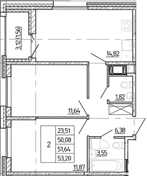 - Площадь50,08 м2