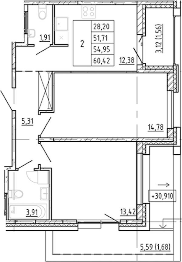 • Площадь51,71 м2