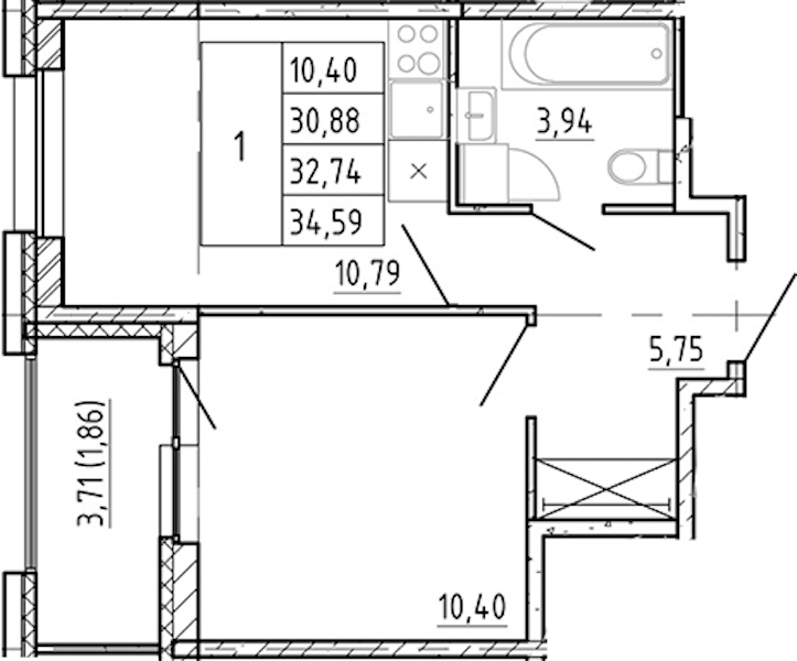 - Площадь кухни10,79 м2