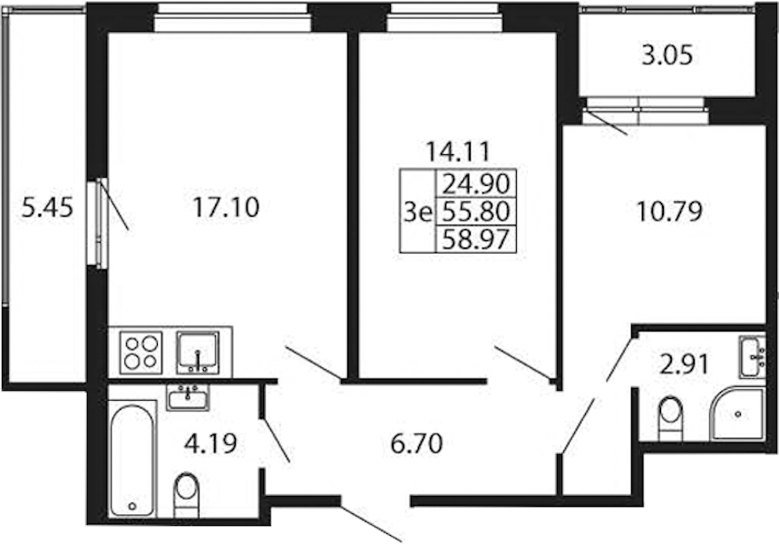 • Площадь55,8 м2
