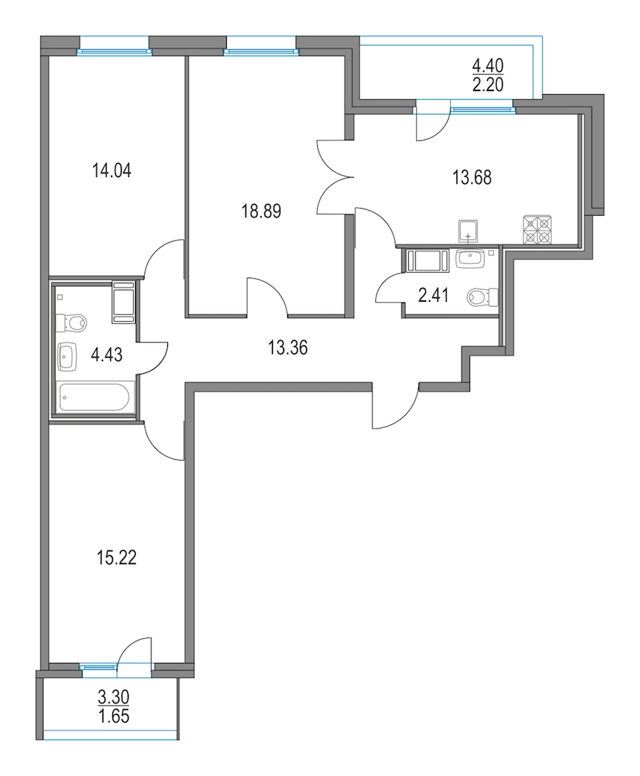 - Площадь кухни13,68 м2