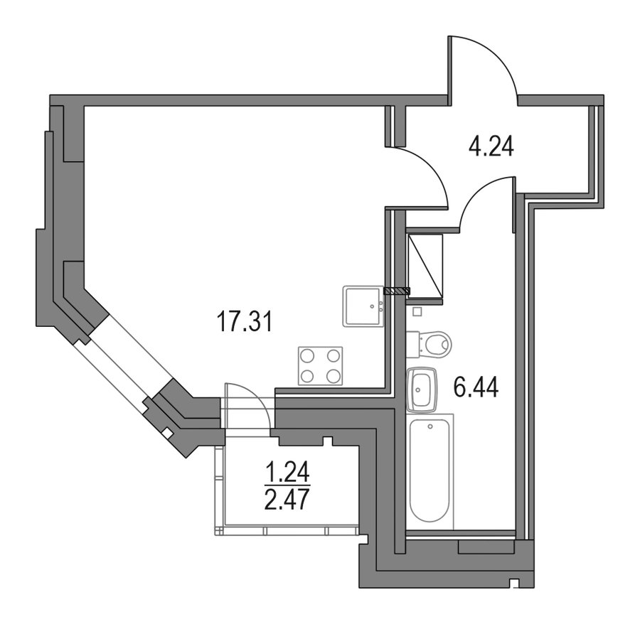 Квартира-студия на 22-ом этаже 27,99 кв.м