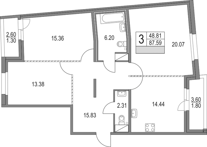 • Площадь87,59 м2