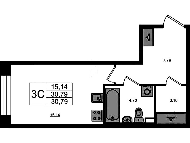 Квартира-студия на 2-ом этаже 30,79 кв.м