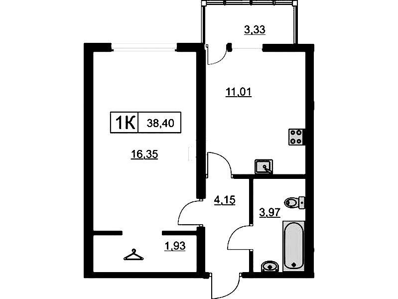 Однокомнатная квартира на 12-ом этаже 38,2 кв.м