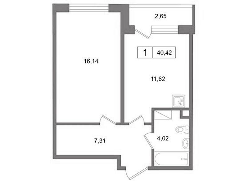 Однокомнатная квартира на 3-ем этаже 40,42 кв.м