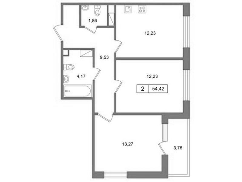 - Площадь54,42 м2